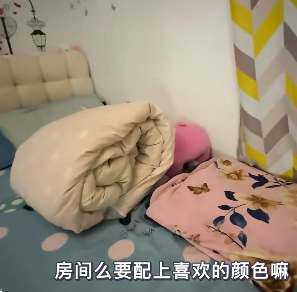 先看哥哥大薛的房间,宽敞明亮,虽然偶尔有点乱,但能看出来被收拾过的痕迹;再看小薛自己的房间,瞬间反差拉满——粉色的被子、紫色和黄色的窗帘,床头还摆着好几个毛绒玩具,温馨又可爱。